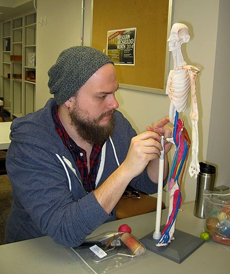 Student studying human anatomy by building it in clay in "Functional Morphology of the Human Skeleton"